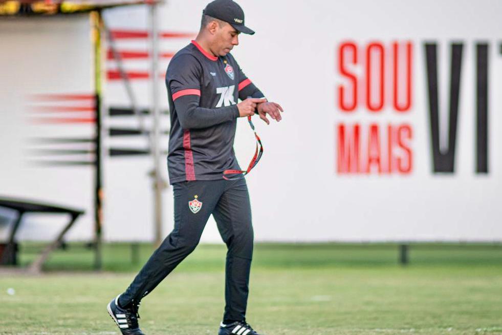 Após o aquecimento com movimentos sem bola, o preparador físico Juninho Nogueira aplicou treinamento com exercícios de aceleração e força visando o fortalecimento muscular.